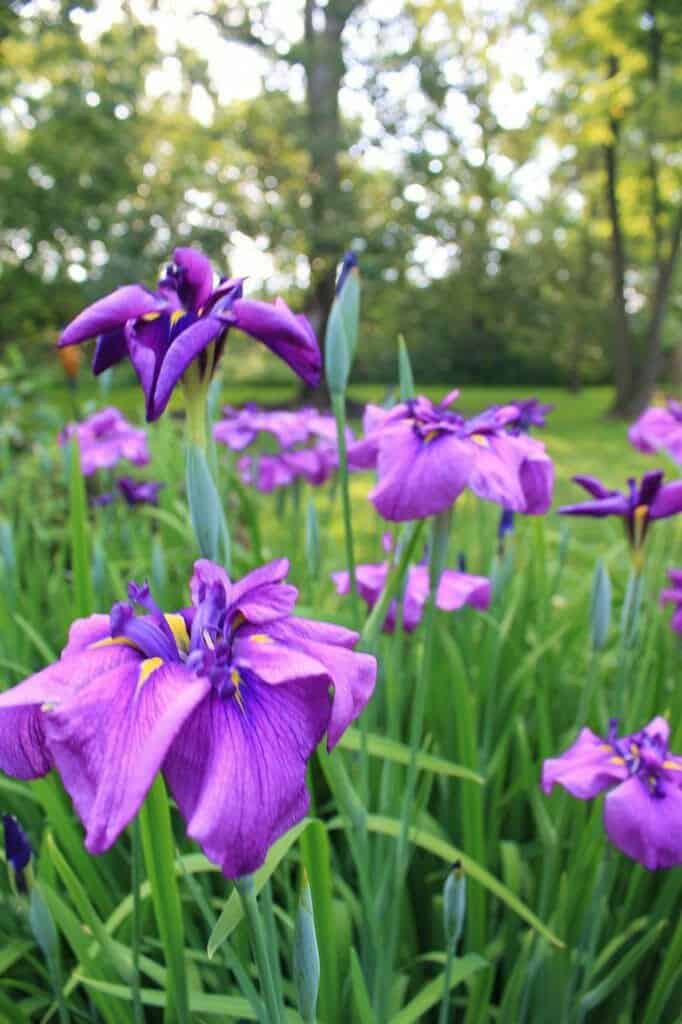 Until I got fed up with watching every plant languish in that spot, I researched plants that are well-suited to moist soil and can tolerate full sun and clay soil. Enter the Japanese Iris. I planted two Japanese Irises there and they flourished. Not only did they prosper, but they grew with very little extra assistance from me!