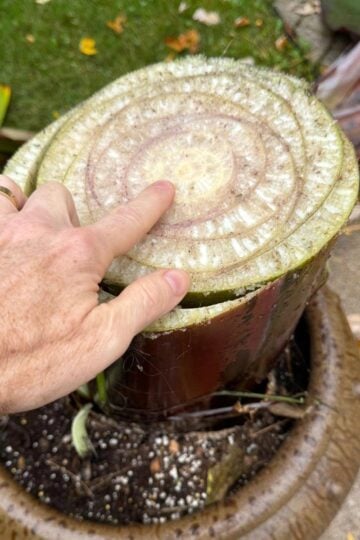 You can see in the photo above that there are multiple flower spikes, so I pruned it a little further down. It's OK to remove some leaves! This will not harm the plant at all. In fact, this is my preferred method. I prefer to take off the flowers, as well as some of the leaves underneath.