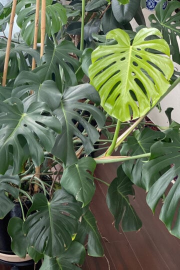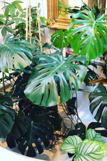Those signature holes and splits (called fenestrations) aren't just for looks - they're an adaptation that allows light to pass through to lower leaves and helps the plant withstand heavy tropical rains. Indoors, Monsteras thrive in bright light, consistent watering, and sturdy support like a moss pole or trellis to encourage larger, more mature foliage.